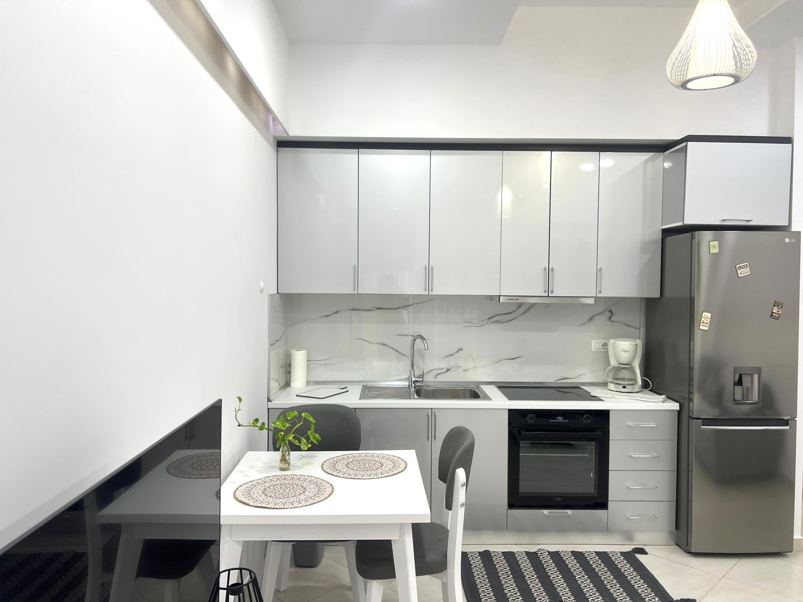 Është i mobiluar në mënyrë speciale, me stil të veçantë dhe me të gjitha pajisjet e nevojshme për një jetesë cilësore, përfshirë kondicioner. Ambienti është i bollshëm dhe i mirëorganizuar.